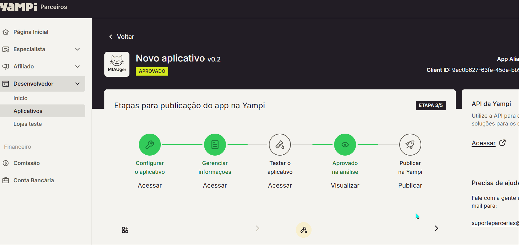 Entre na seção de desenvolvedor no seu painel de parceiro Yampi.