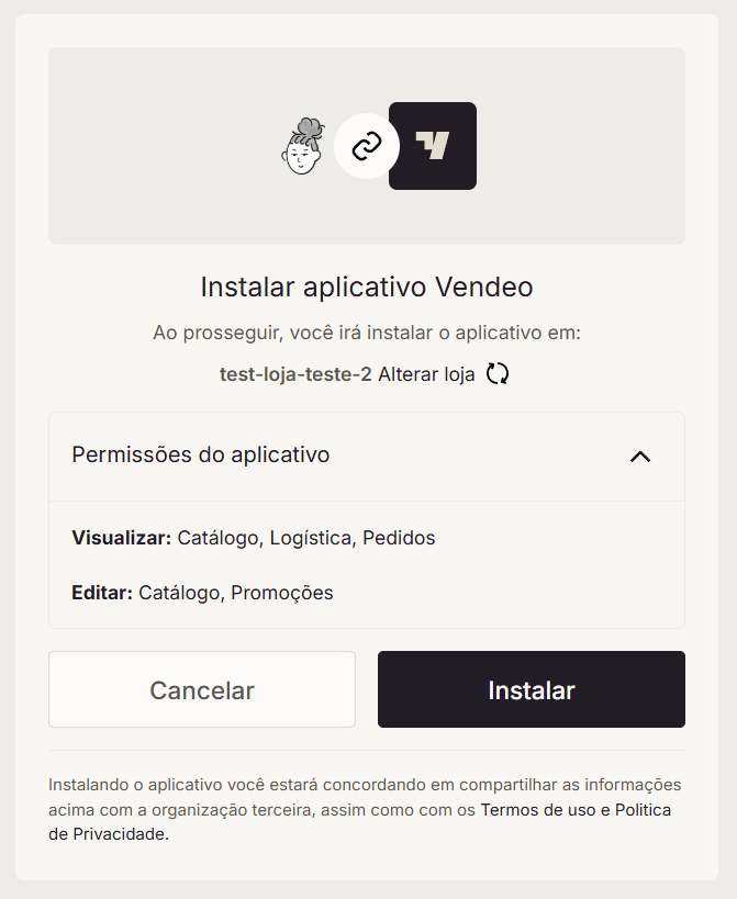 Selecione a loja de teste que deseja utilizar e clique em “Instalar”.\