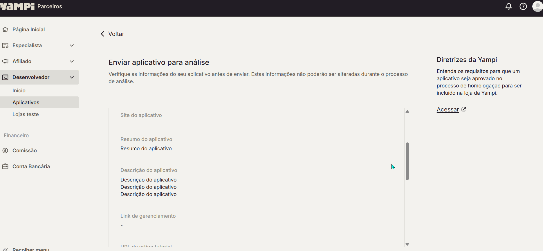 - O app ficará pronto para ser publicado na Loja de Aplicativos da Yampi;